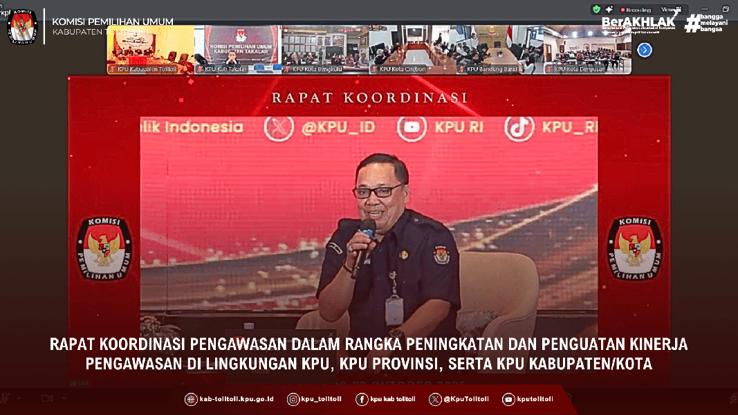 Tolitoli, kab-tolitoli.kpu.go.id,- KPU Kabupaten Tolitoli menghadiri Rapat Koordinasi Pengawasan dalam rangka peningkatan dan penguatan kinerja pengawasan di lingkungan KPU, KPU Provinsi, serta KPU Kabupaten/Kota melalui zoom meeting, (21/10/2025)