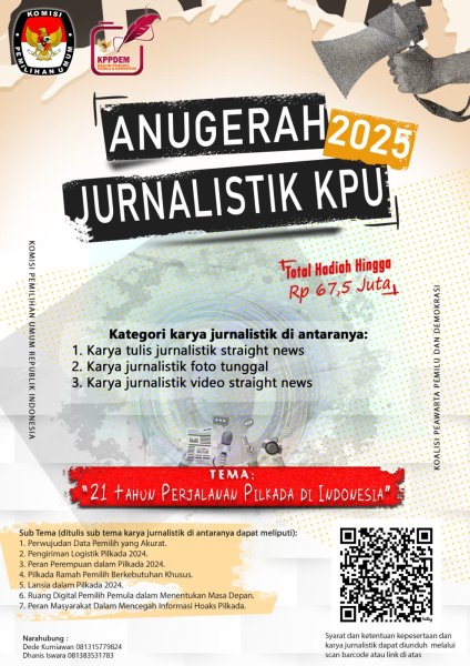 Komisi Pemilihan Umum Republik Indonesia bersama KPPDEM membuka Anugerah Jurnalistik KPU 2025 dengan total hadiah hingga Rp 67,5 juta! ????