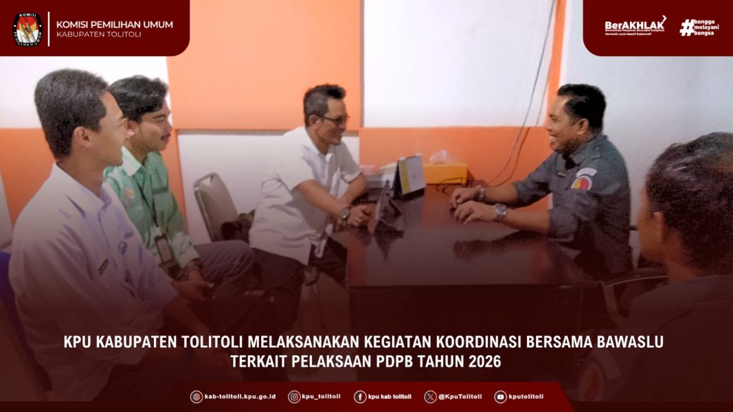 KPU Kabupaten Tolitoli melaksanakan kegiatan koordinasi bersama Bawaslu Kabupaten Tolitoli terkait pelaksanaan PPDB Tahun 2026