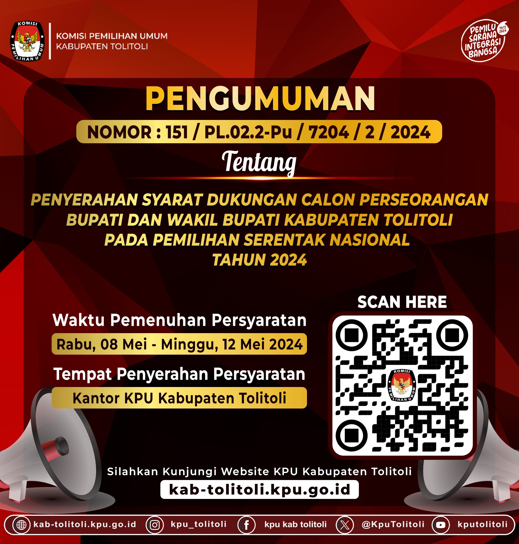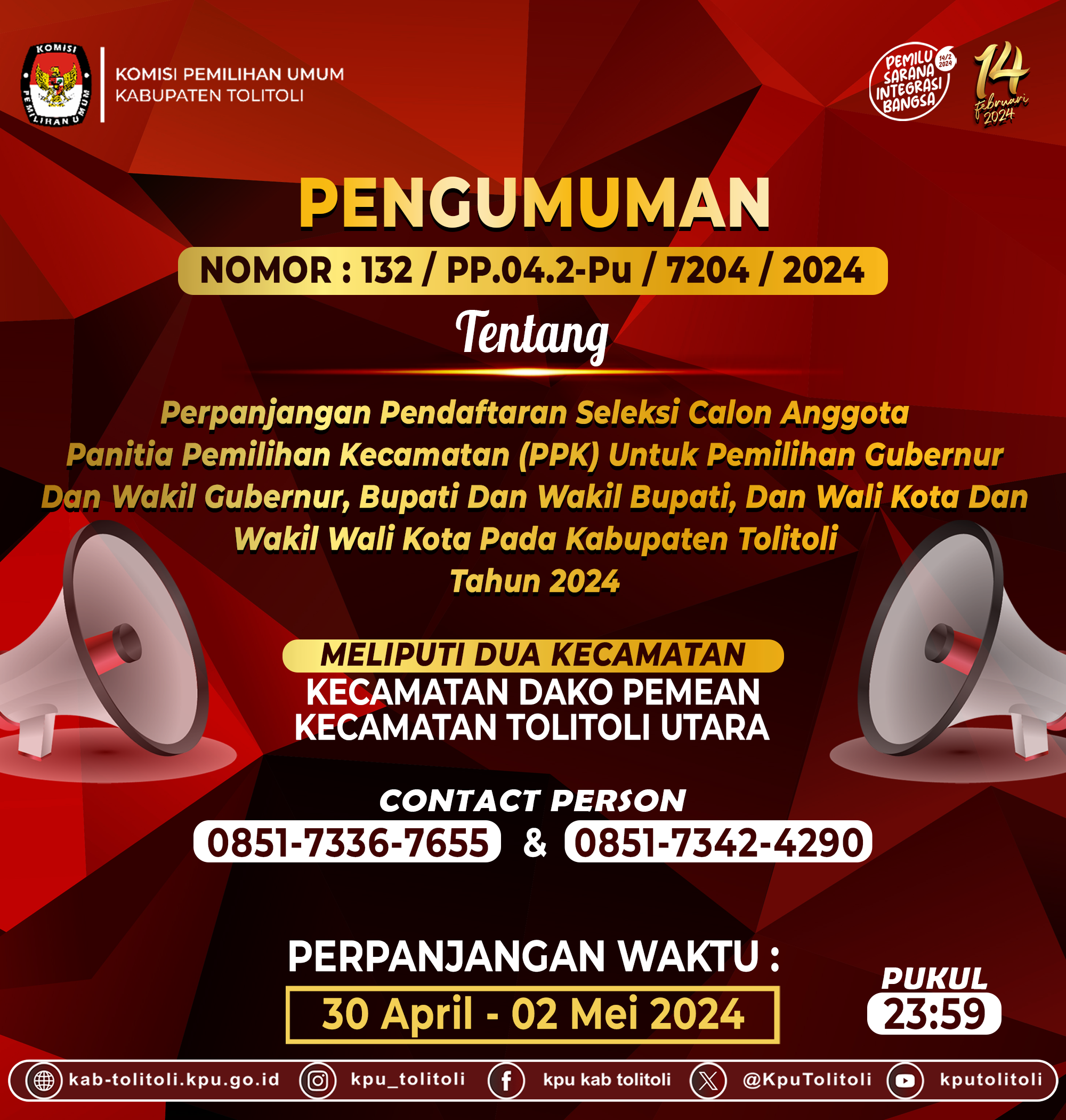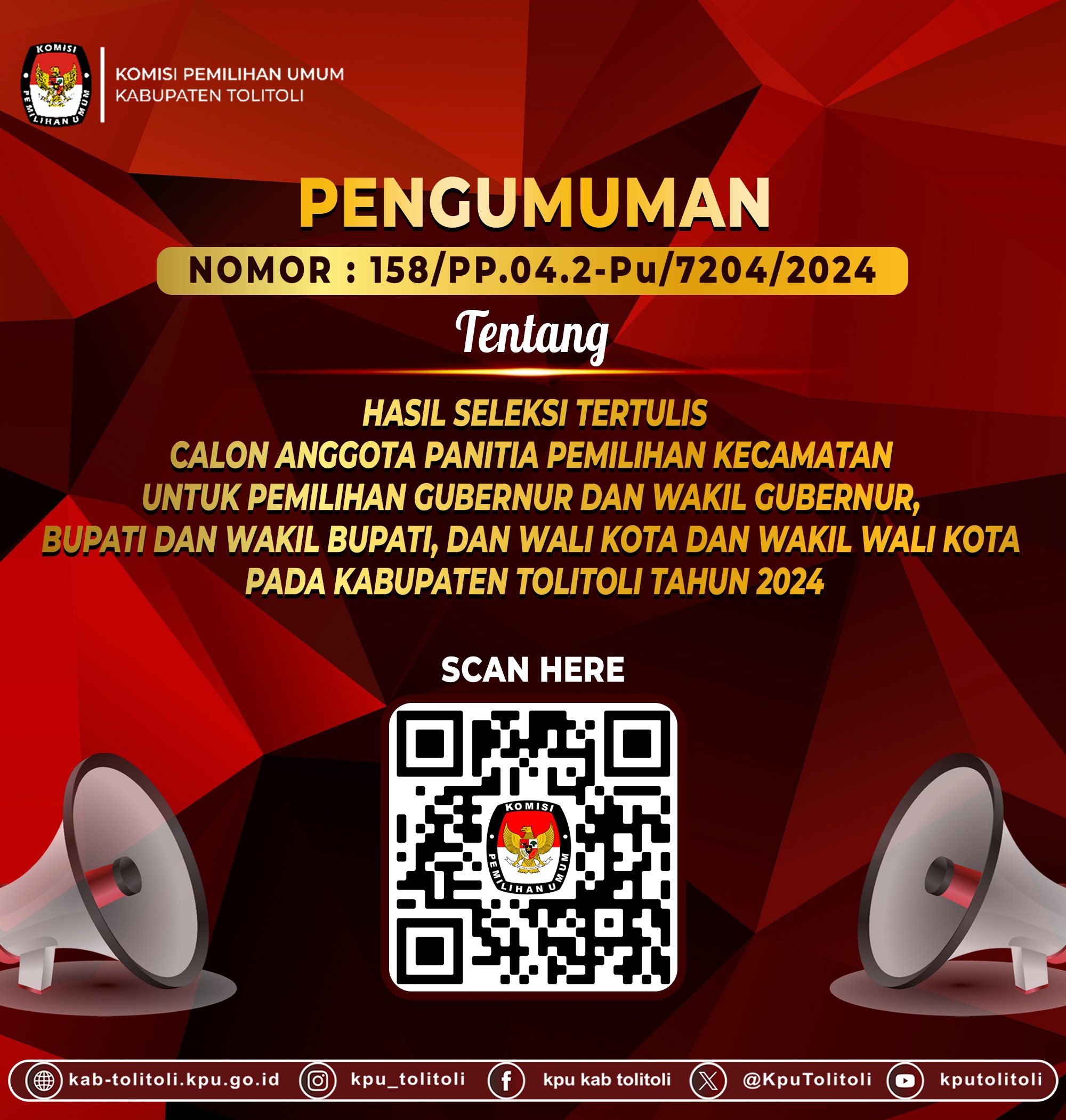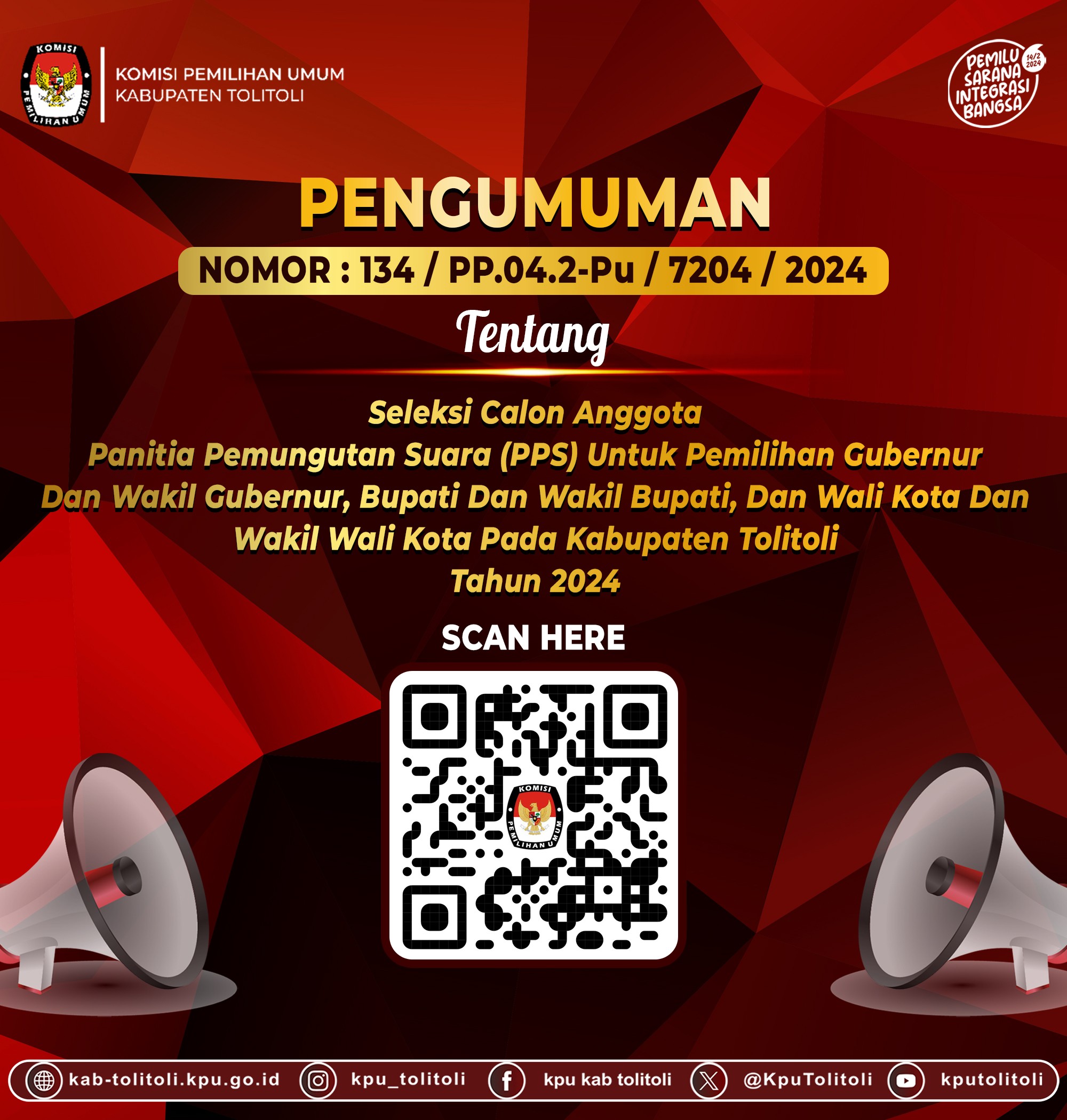 Tolitoli-kab-tolitoli.kpu.go.id, Berikut Penngumuman Hasil Penelitian Administrasi Calon Anggota Panitia Pemilihan Kecamatan (PPK) untuk Pemilihan Gubernur dan Wakil Gubernur, Bupati dan Wakil Bupati, dan Walikota dan Wakil WaliKota pada Kabupaten Tolitoli Tahun 2024. Selengkapnya Download disini