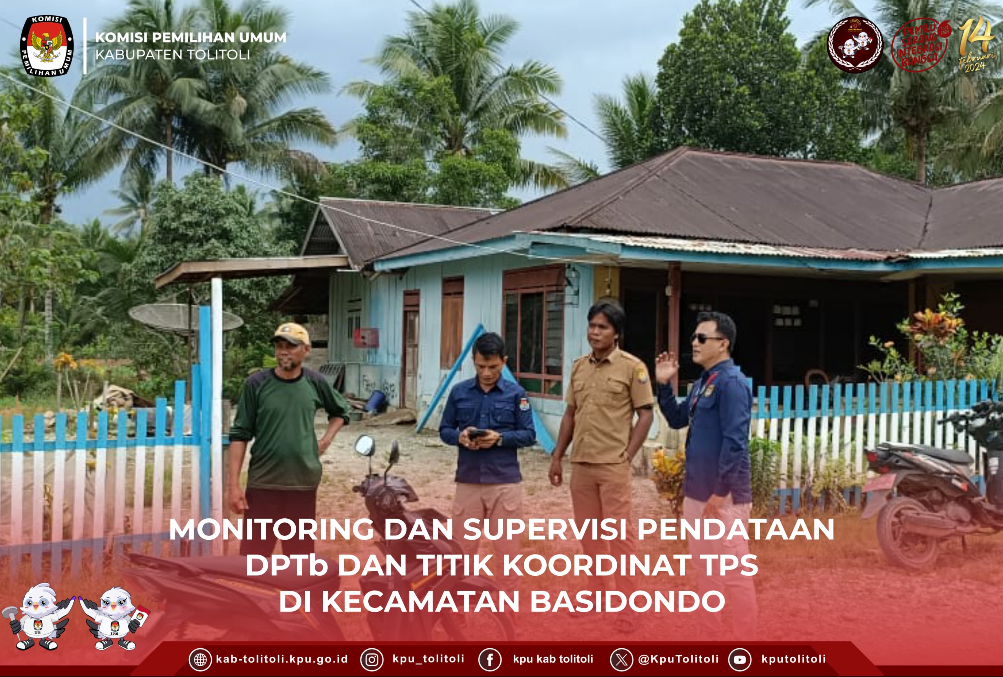 Tolitoli, kab-tolitoli.kpu.go.id – Komisi Pemilihan Umum Kabupaten Tolitoli melakukan Monitoring dan Supervisi Pendataan Daftar Pemilih Tambahan (DPTb) dan Titik Koordinat Tempat Pemungutan Suara (TPS), di Kecamatan Dondo, Rabu,(22/11/2023). Ketua Divisi Perencanaan, Data dan Informasi melakukan Monitoring dan Supervisi berkenaan dengan DPTb dan Titik Koordinat TPS di Kecamatan Dondo Kabupaten Tolitoli, kegiatan ini bertujuan untuk memastikan pemenuhan kuota pemilih DPTb pada TPS juga memastikan titik koordinat TPS tidak terjadi perubahan dan mendapatkan akses internet, dengan harapan kedepan pada Pemilu dapat mengakomodir semua pihak yang berpentingan pada Pemilu tahun 2024. Pada Pleno Rutin Kabupaten Tolitoli Nasrin, S.sos selaku pengampuh Divisi Data dan Informasi KPU Kabupaten Tolitoli menekankan pentingnya Monev ini dilakukan untuk mendukung tahapan yang sedang berlangsung dengan melibatkan badan Adhoc Panitia Pemilihan Kecamatan (PPK) dan Panitia Pemungutan Suara (PPS) di tiap Kecamatan dan Kelurahan/Desa demi memastikan bahwa Kuota Pemilih DPTb terpenuhi dan keberadaan Lokasi Titik Koordinat TPS belum berpindah dan berada pada lokasi yang dapat mengakses signal internet. Ketua Divisi Data dan informasi KPU Kabupaten Tolitoli menegaskan bahwa Lembaga KPU Tolitoli benar benar mengawal Regulasi, bahkan berkerja sama dengan pihak terkait demi keberlangsungan dan kesesuksesan tahapan Pemilu kedepan yang akan di laksanakan pada hari Rabu tanggal 14 februari 2024. Hadir pada Monitoring dan Supervisi tersebut, Operator Sistem informasi Data Pemilih (Sidalih) dan PPK Kecamatan Dondo.(Humas KPU Kabupaten Tolitoli Mutmainnah/foto Indah/ed Herdyanti)