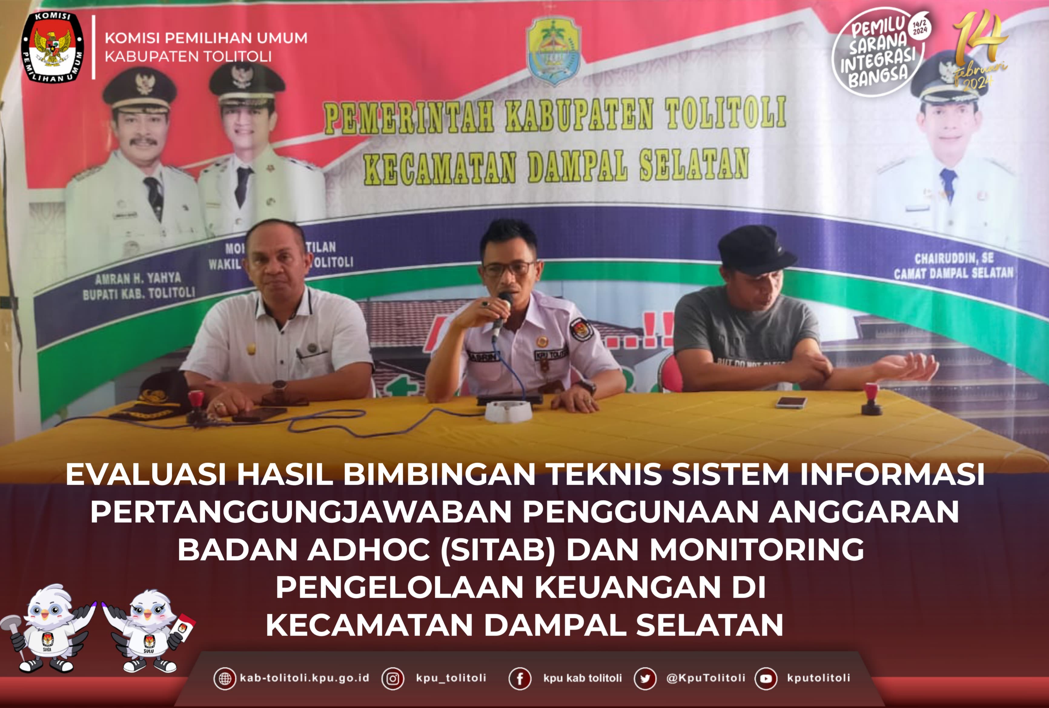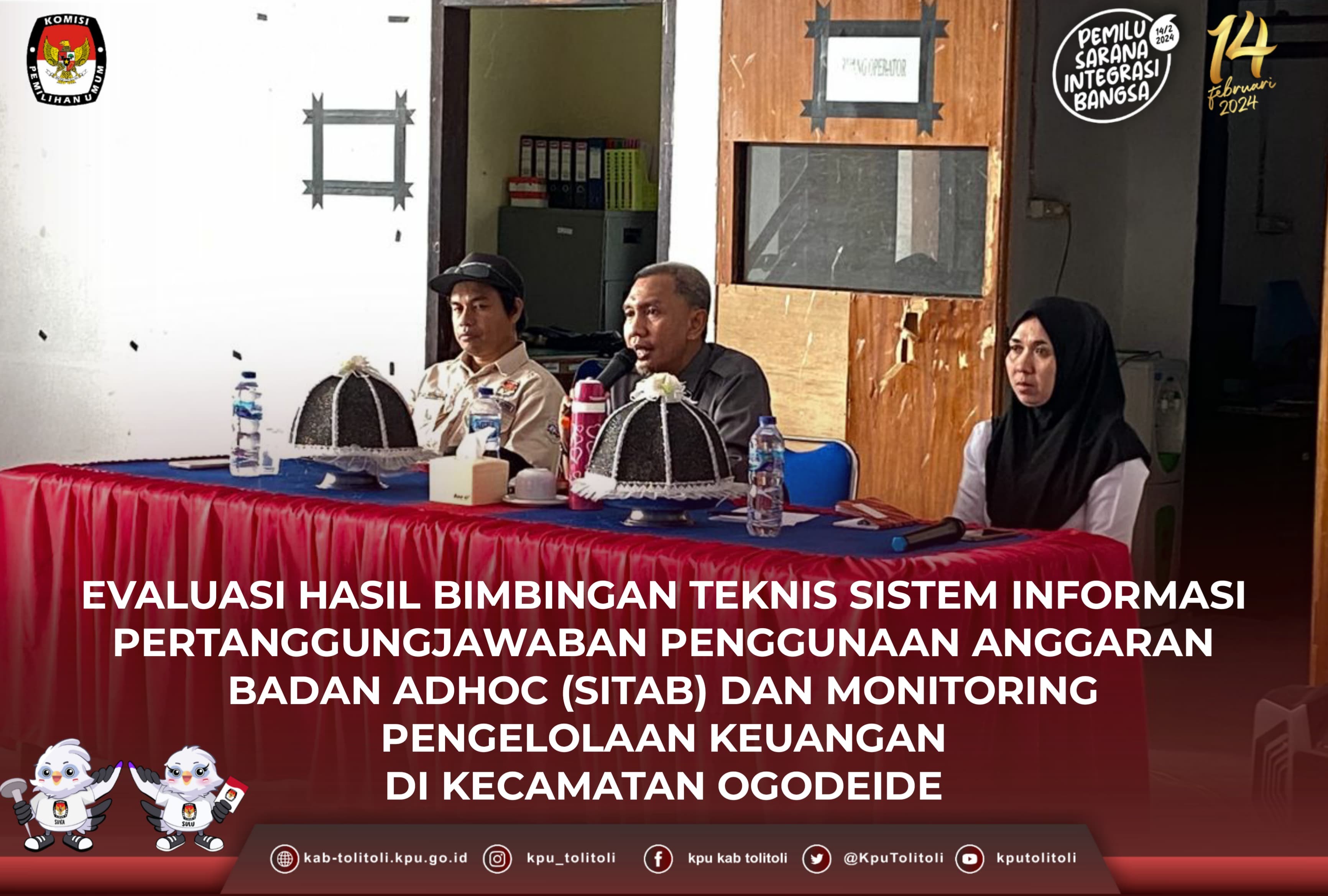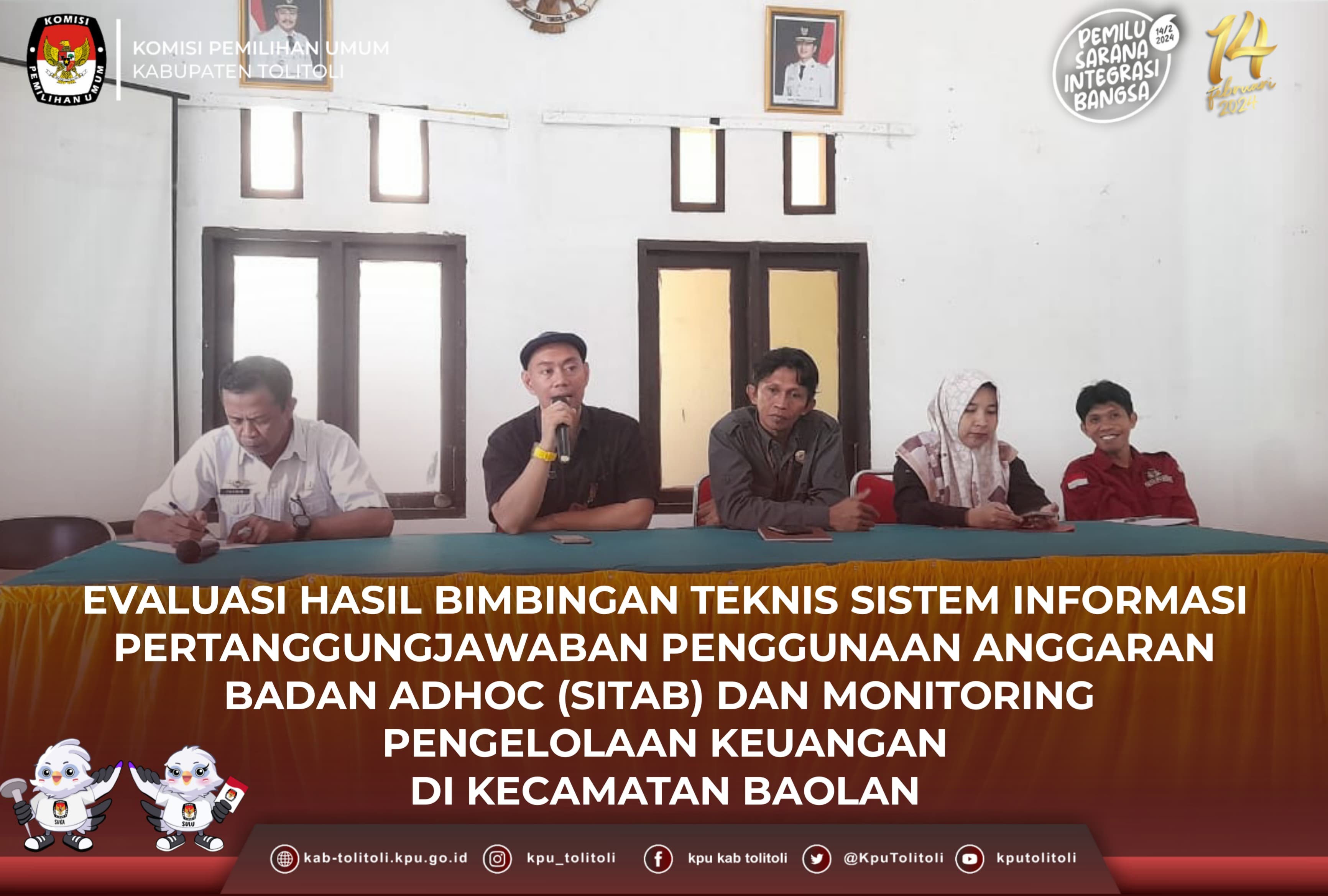 Baolan, kab-tolitoli.kpu.go.id - Komisi Pemilihan Umum Kabupaten Tolitoli dalam hal ini Koordinator Divisi Sosialisasi Pendidikan Pemilih, Partisipasi Masyarakat, dan SDM, Warman dan Kepala Sub Bagian Keuangan Umum dan Logistik (KUL), Ovelio Layuk beserta Tim Keuangan, melaksanakan Evaluasi hasil bimbingan teknis (Bimtek) Sistem Informasi Pertanggungjawaban Penggunaan Anggaran Badan Adhoc (SITAB), di Kecamatan Baolan Kabupaten Tolitoli, Rabu(01/11/2023).