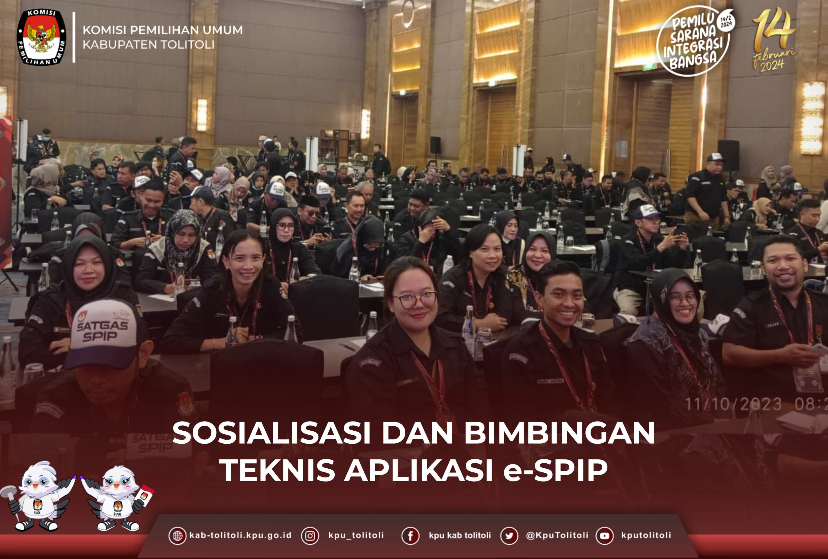 Sebelumnya, telah digelar Sosialisasi dan peluncuran aplikasi e-SPIP, yang dihadiri Ketua KPU dan Divisi Hukum serta Sekretaris KPU se Indonesia, dan kemudian ditutup dengan Bimtek penggunaan aplikasi e-SPIP, yang dihadiri Kasubag Hukum dan Pengawasan, serta operator di lingkungan KPU se Indonesia.(Humas KPU Kabupaten Tolitoli Mutmainnah/Foto Winda/Ed Herdyanti).