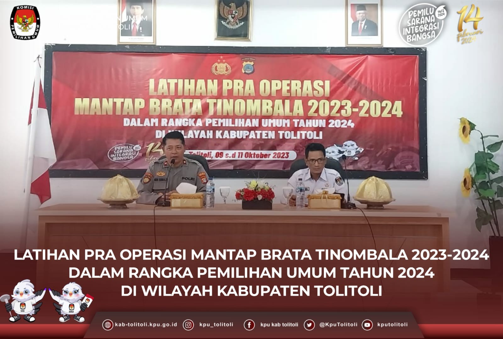Tolitoli, kab-tolitoli.kpu.go.id - Komisi Pemilihan Umum kabupaten Tolitoli dalam hal ini Ketua Divisi Perencanaan Data dan Informasi Nasrin Menjadi Narasumber dalam kegiatan Latihan Pra Operasi Mantap Brata Tinombala 2023-2024 di Aula Jananuraga Polres Tolitoli, Senin (9/10/2023).