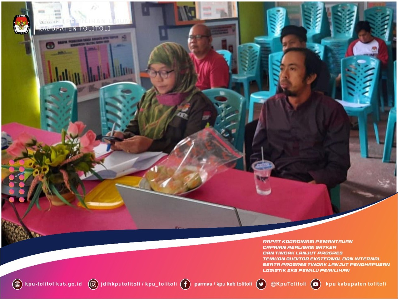 (Selasa 08/02/2022) Menindaklanjuti Surat Tugas KPU no. 22/PW.02.7/12/2022 tentang Pelaksanaan Reviu Laporan Keuangan KPU semester II Tahun 2021 Tingkat Uakpa dan Uakpa-W, maka KPU Kabupaten Tolitoli mengikuti kegiatan tersebut yang diadakan selama 4 (empat) hari terhitung mulai tanggal 8 s/d 11 februari 2022. Pelaksanaan Kegiatan tersebut dilakukan secara daring (virtual zoom meeting) oleh KPU Provinsi Sulawesi Tengah. Bertempat di ruang kerja Sekretariat KPU Kabupaten Tolitoli pukul 10.00 s/d selesai, Sekretaris KPU Kabupaten Tolitoli Habiba I. Timumun bersama plt Kasubbag Keuangan, Umum dan Logistik Sri Sulastri didampingi operator mengikuti pembukaan kegiatan dan mendengarkan reviu laporan keuangan Semester II tahun 2021 oleh KPU Kabupaten Sigi, KPU Kabupaten Donggala, dan KPU Kabupaten Morowali Utara yang lebih dulu menyampaikan pemaparan perihal laporan Keuangan sesuai dengan jadwal yang terlampir. KPU Kabupaten Tolitoli sendiri rencananya akan melakukan pemaparan perihal reviu laporan keuangan semester II tahun 2021 pada hari rabu tanggal 09 febuari 2022 pukul 09.00 s/d selesai. Peserta kegiatan terdiri dari : a. Sekretaris KPU Kabupaten/Kota se-Sulteng b. Kasubbag Keuangan, Umum dan Logistik KPU Kabupaten/Kota se-Sulteng c. Operator SAIBA dan SIMAK BMN KPU Kabupaten/Kota se-Sulteng.