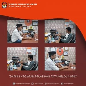 KPU Kabupaten Tolitoli mengikuti kegiatan Pelatihan Tata Kelola PPID secara daring yang dilaksanakan pada pukul 08.30 sampai dengan selesai. Kegiatan tersebut diselenggarakan oleh KPU Provinsi Sulawesi tengah dan diikuti oleh seluruh peserta yang terdiri dari Ketua KPU, Komisioner dari Divisi Sosialisasi, Pendidikan Pemilih, Parmas, dan SDM, Sekretaris KPU, Kasubag Teknis dan Hupmas, beserta operator PPID Kabupaten/kota se Provinsi Sulawesi tengah. Narasumber pada Pelatihan Tata Kelola PPID terdiri dari Ketua dan Anggota KPU Provinsi Sulawesi Tengah, KPU RI, Setjend KPU RI, Ketua KIP Provinsi Sulawesi Tengah.